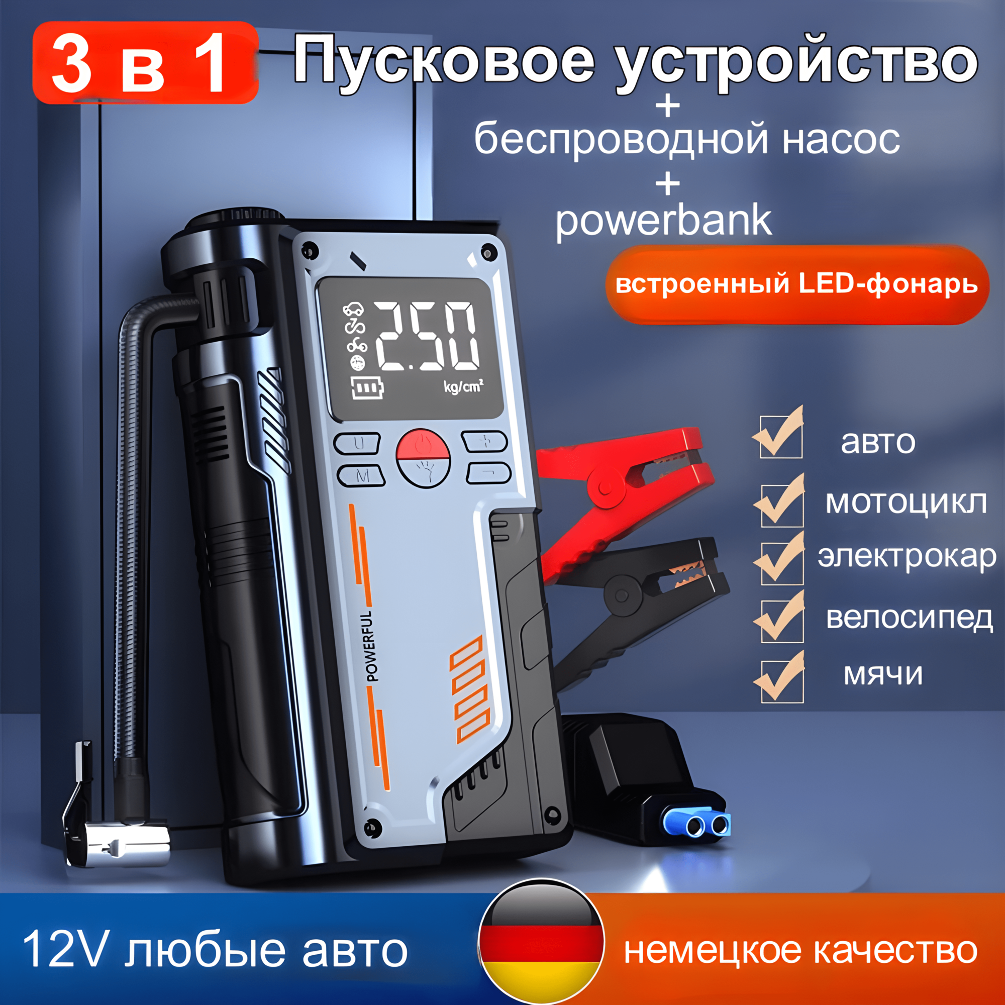 10 цен на Пусковое устройство для автомобиля с компрессором + powerbank