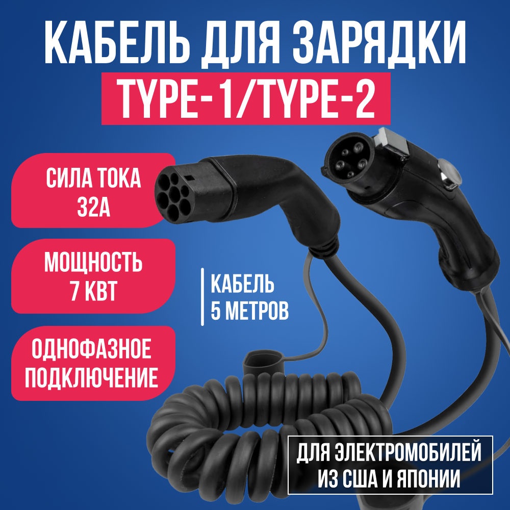 Кабель для зарядки электроавтомобилей Type-1/Type-2 информация: