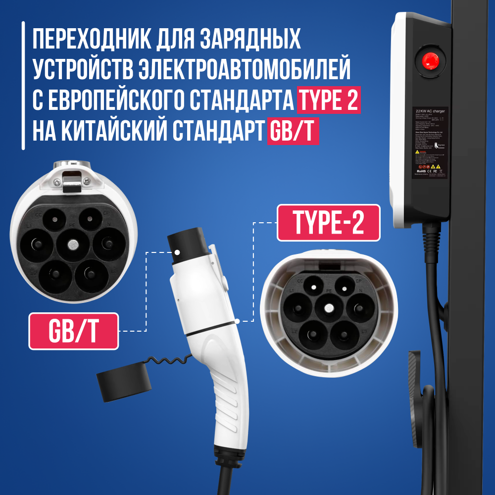 10 цен на Переходник Type 2 - GB/T для зарядки китайских электромобилей