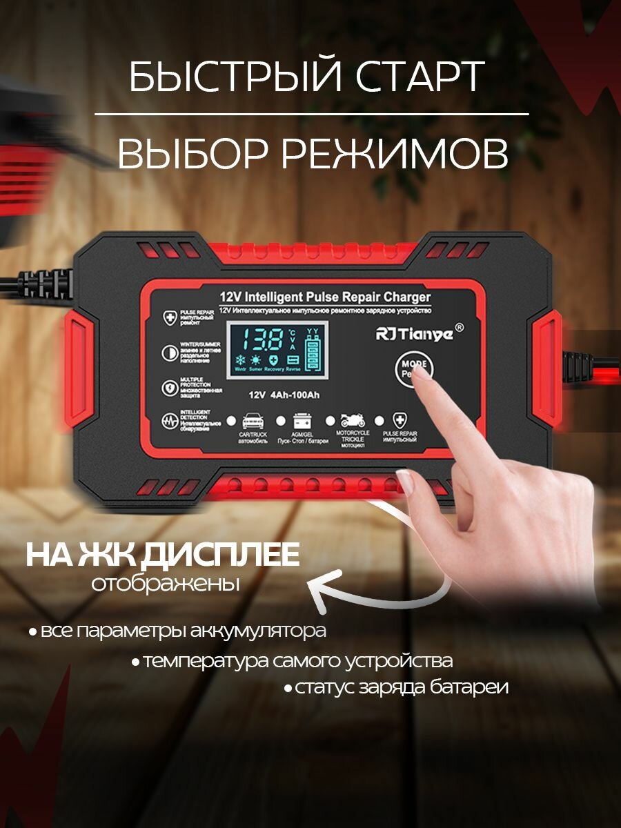 Зарядное устройство автомобильного аккумулятора 6А 12V в красном корпусе информация: