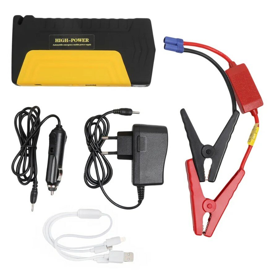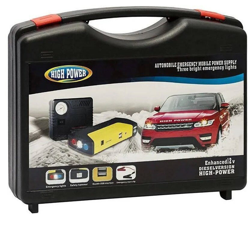 | Комплектация | пуско-зарядное устройство, адаптер питания, воздушный компрессор, провода прикуривания с клеммами, провод к автоприкуривателю, многофункциональный зарядный кабель, инструкция, кейс для хранения |