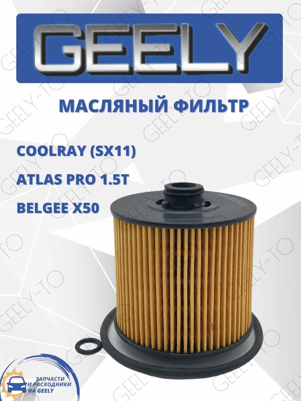Фильтр масляный Geely Coolray Atlas Pro, Belgee x50 Джили Кулрей Атлас Про, Белджи x50 информация: