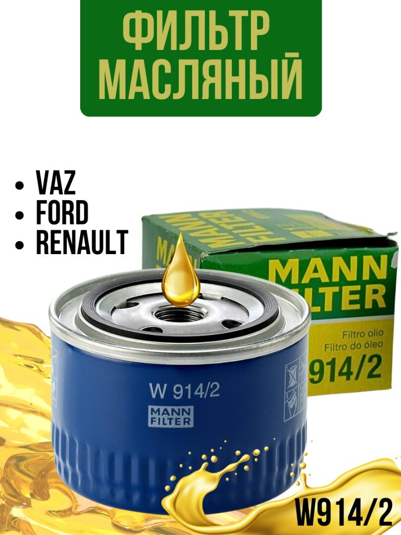 Масляный фильтр MANN FILTER W9142 для а/м ВАЗ 2108-2115, Kalina, Granta, Priora, Vesta, X-Ray, Datsun on-DO, mi-DO. информация: