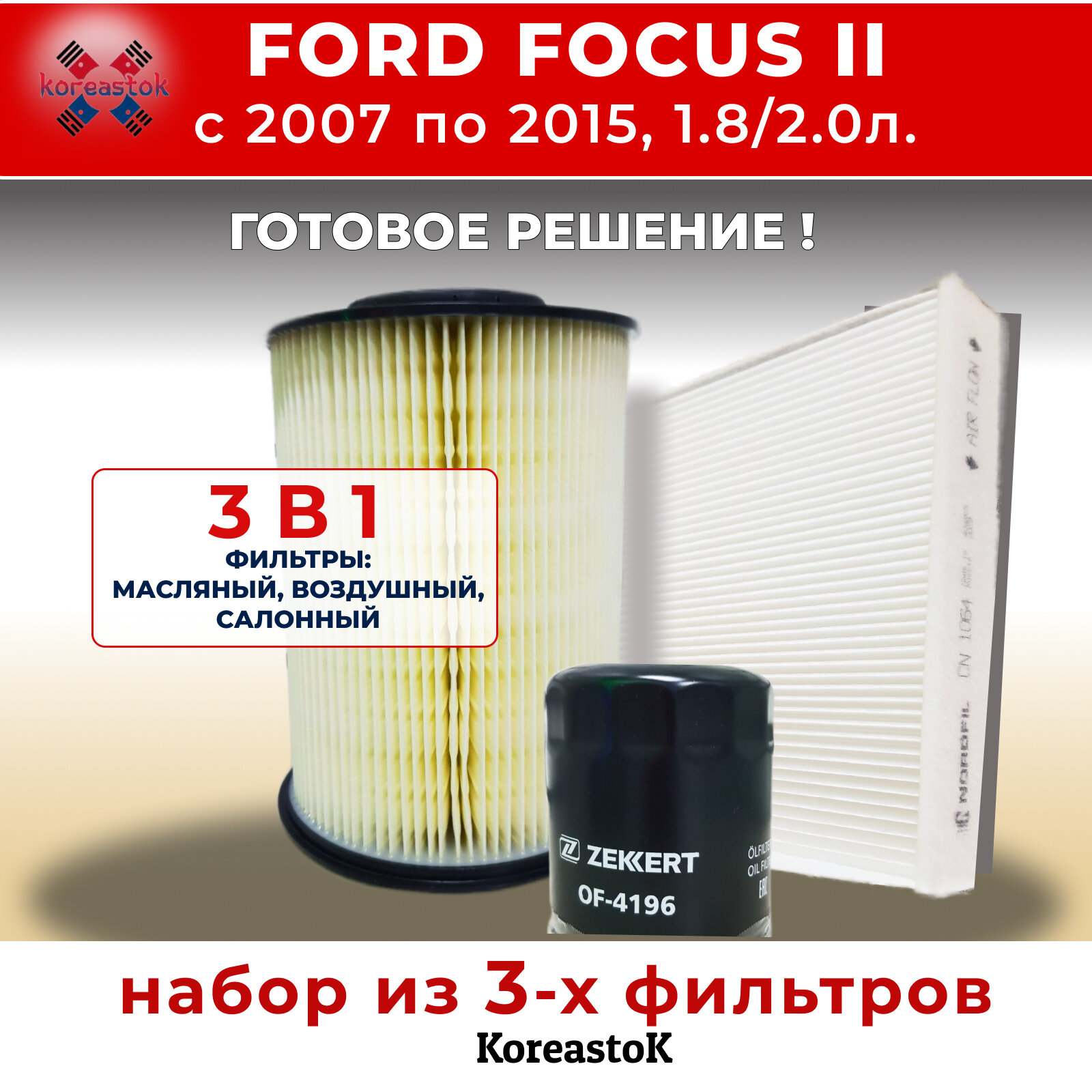 10 цен на Комплект фильтров для Ford Focus 2 2007-2015г. 1.8/2.0 (масляный, воздушный, салонный)