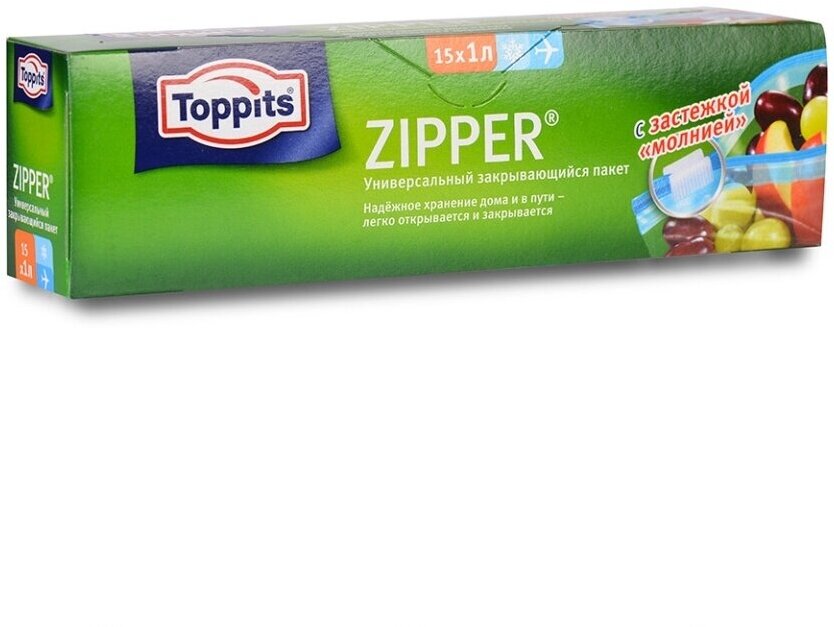TOPPITS Пакеты для хранения, транспортировки и замораживания продуктов, 15шт х 1л информация:
