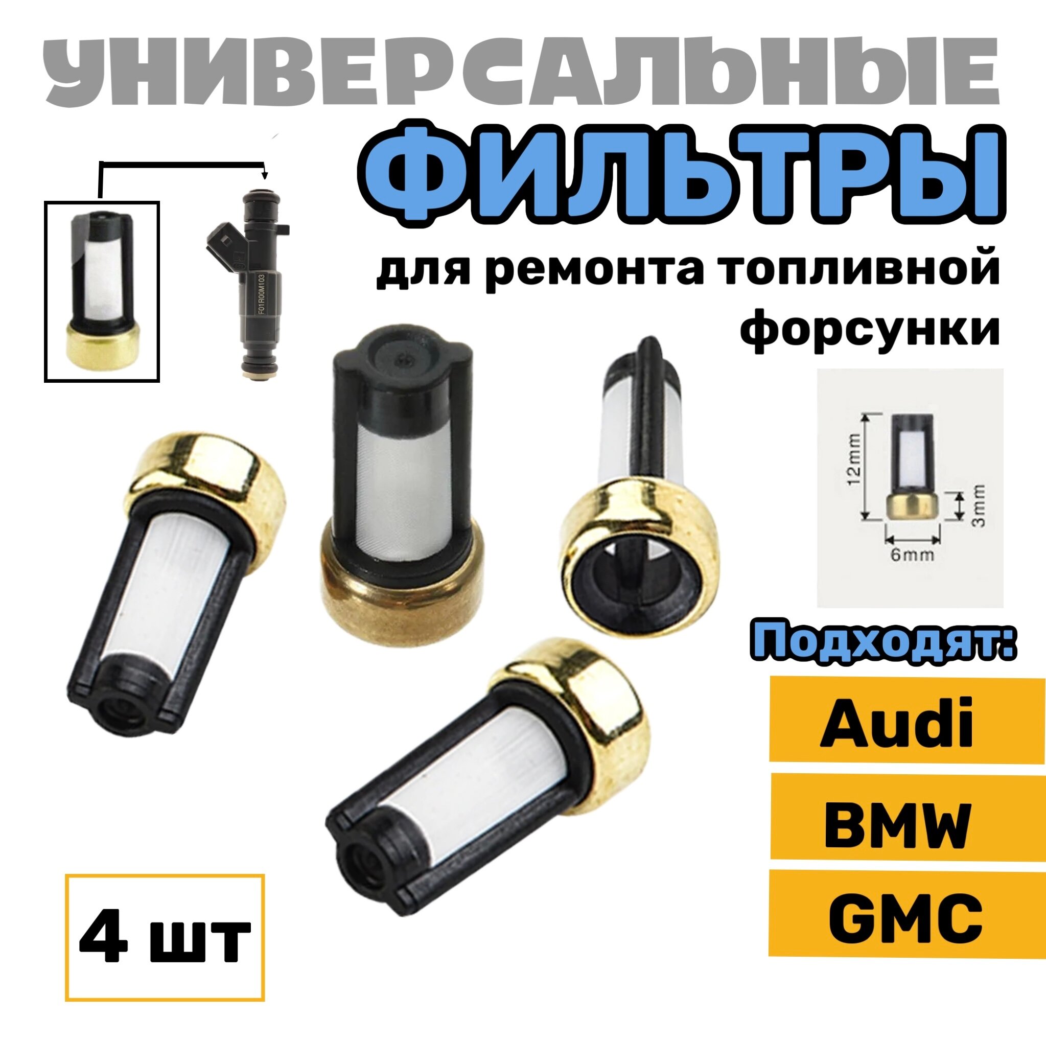 Универсальный фильтр для топливной форсунки F101, 12х3х6, 4шт, черный информация: