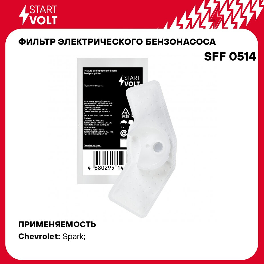 Фильтр электрического бензонасоса для автомобилей Chevrolet Spark M300 (09-) 1.0i/1.2i SFF 0514 StartVolt информация: