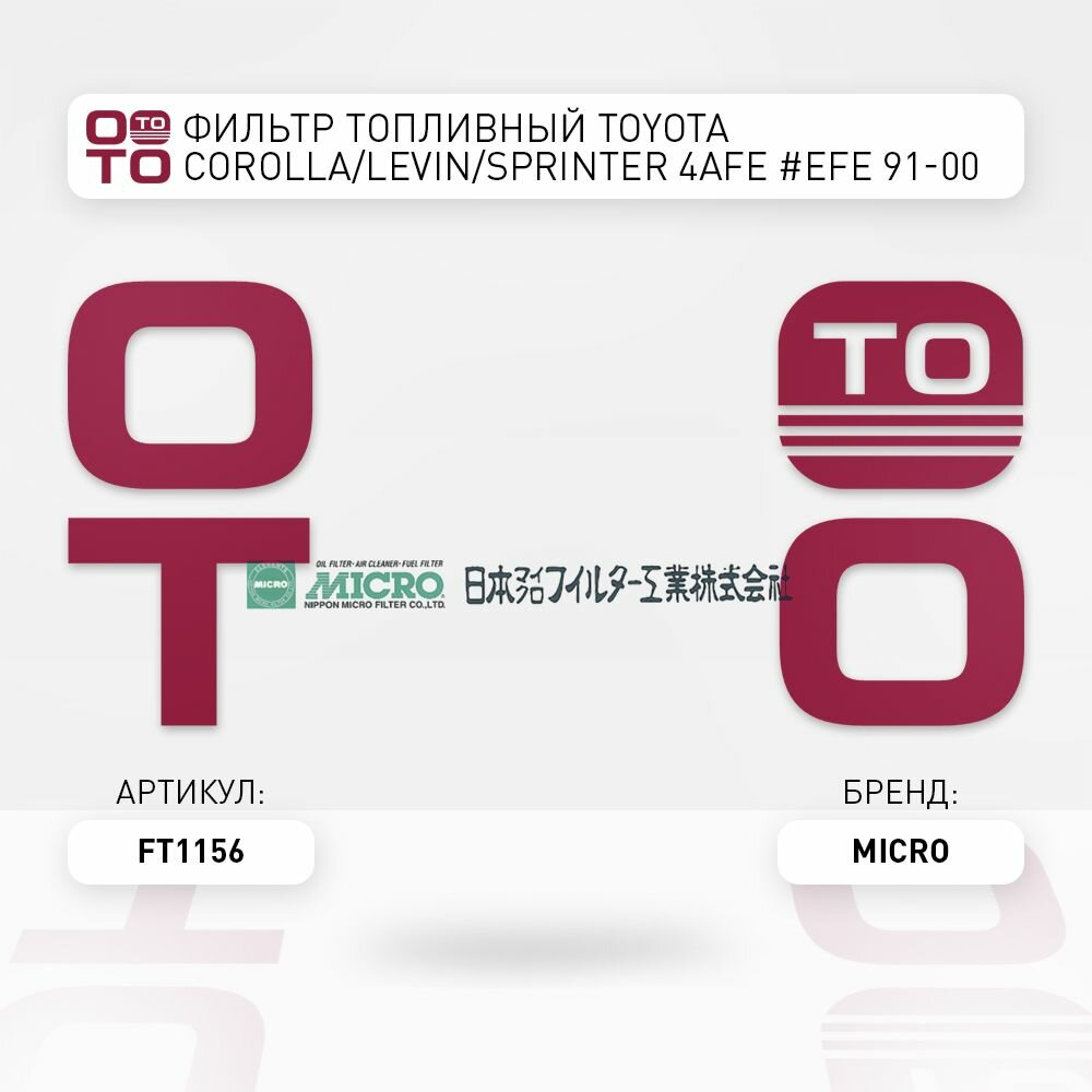 Фильтр топливный TOYOTA COROLLA/LEVIN/SPRINTER 4AFE #EFE 91-00 / MICROFT1156 FT1156 информация: