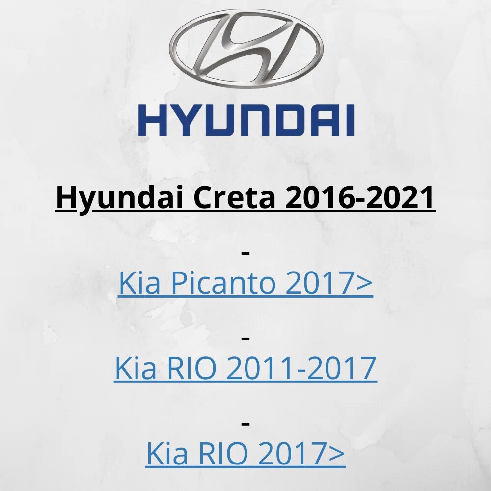 | Модель автомобиля | Hyundai Creta 2016-2021 / Kia Picanto 2017 / Kia RIO 2011-2017 / Kia RIO 2017 |