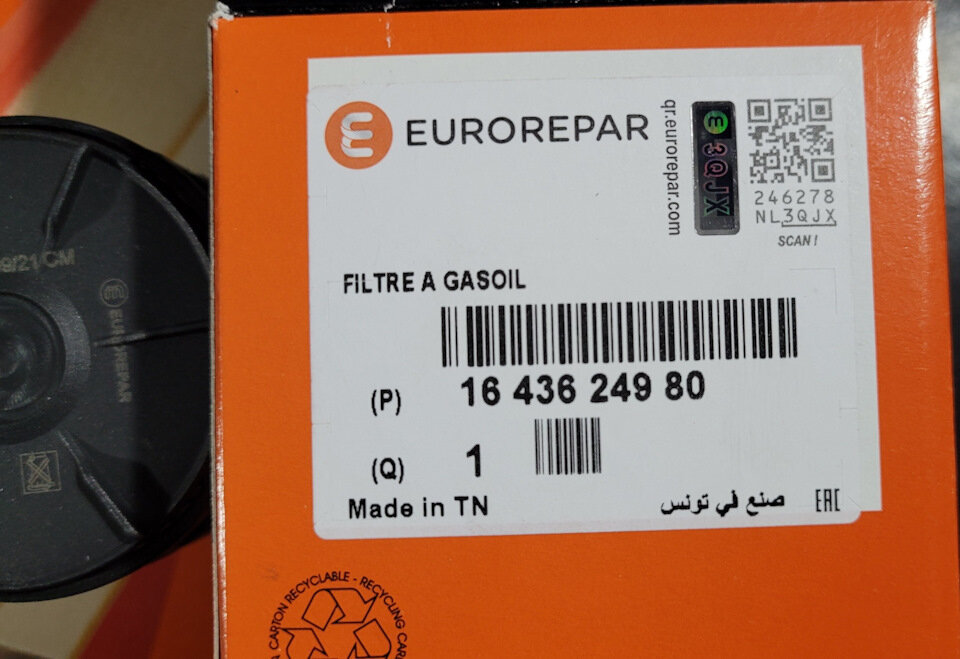 Отзывы на Фильтр топливный FORD KUGA 2.0 13->/ CITROEN BERLINGO 1.6 10->/ PEUGEOT 3008 1.6 16-> EUROREPAR 1643624980