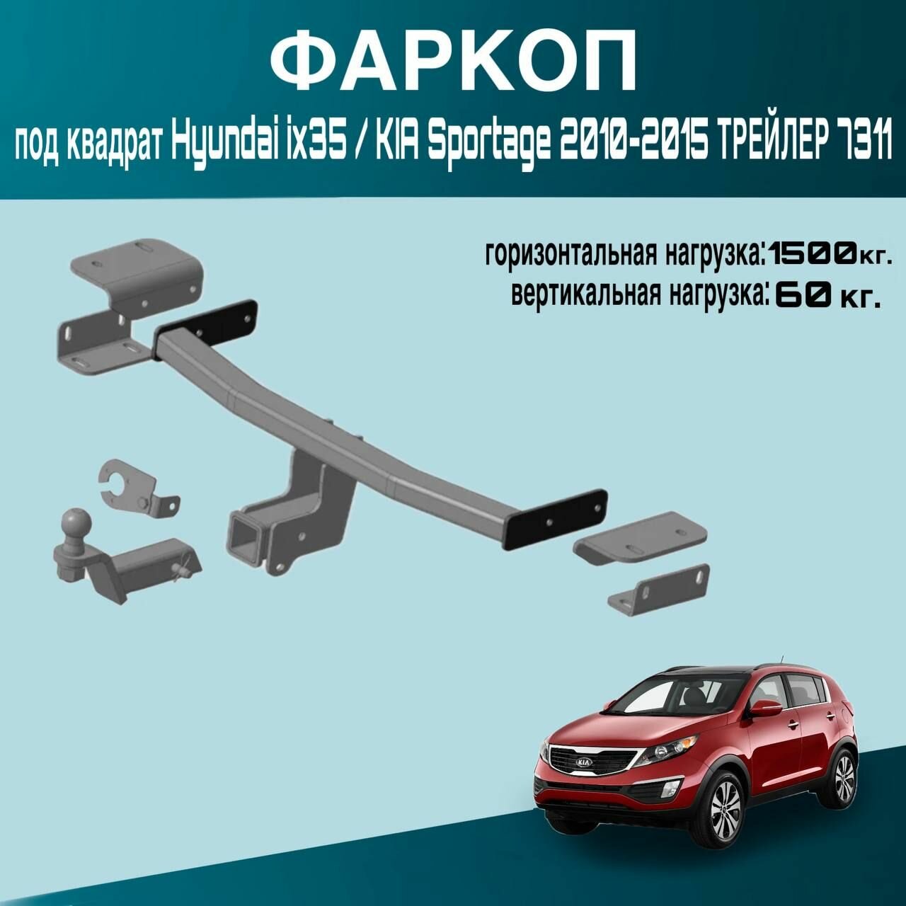 Фаркоп под квадрат Hyundai ix35 / KIA Sportage 2010-2015 трейлер 7311 информация: