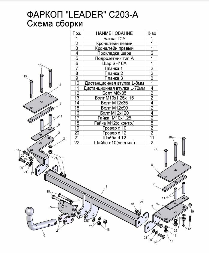 Подробная комплектация | Фаркоп, прицепное устройство (ТСУ) CHEVROLET LACETTI (хетчбек) 2004-2013 --------------------------- Производитель: Лидер Плюс (Россия); Тип шара: съемный, тип "А"; Электрокомплект: приобретается отдельно (С этим ТСУ мы рекомендуем к приобретению KPL-012 Комплект электропроводки универсальный к ТСУ 1,8м.); Вырез бампера: не требуется; Снятие бампера: нет; Утилизация усилителя: нет; Сверление кузова / лонжеронов: 4 отверстия; Максимальная масса буксируемого прицепа: 1200кг; Вертикальная нагрузка: 75кг; Масса ТСУ: 17.22 кг; Артикул: C203-A (съемный шар тип А) |