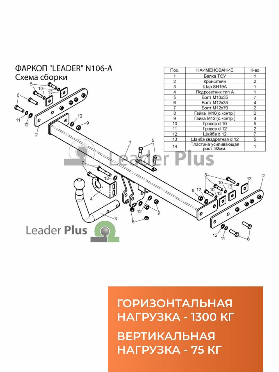 Фаркоп для Nissan Almera (N16) седан (2000-2006) Лидер-Плюс N106-A информация: