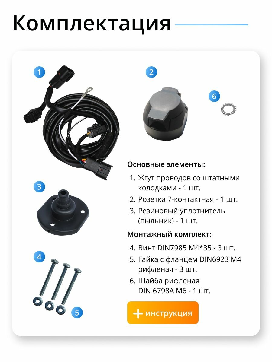 Комплект электропроводки для фаркопа LADA Largus 2012-2021 гг со штатными колодками