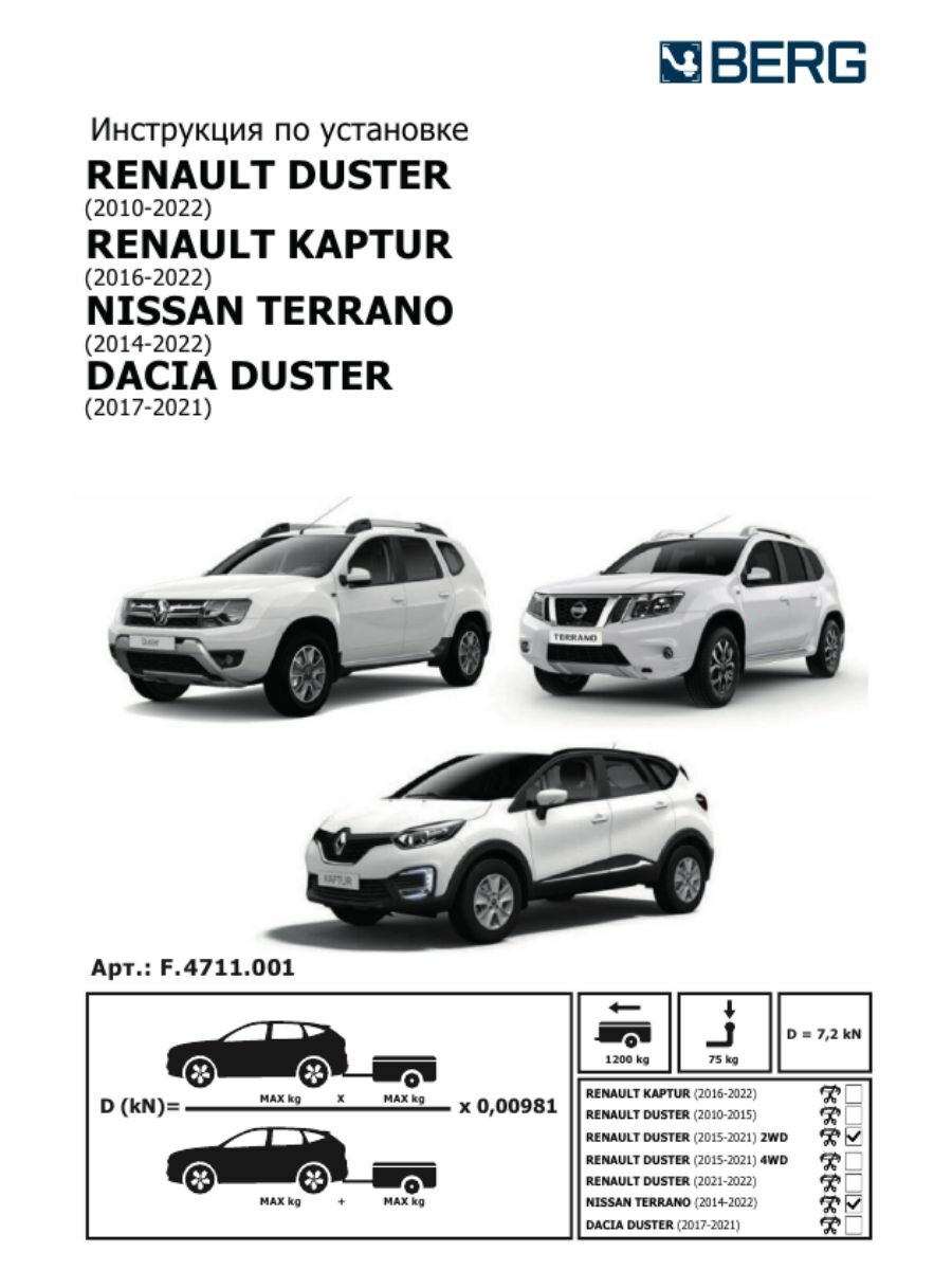 | Совместимые автомобили | Nissan Terrano, Renault Duster, Renault Kaptur |