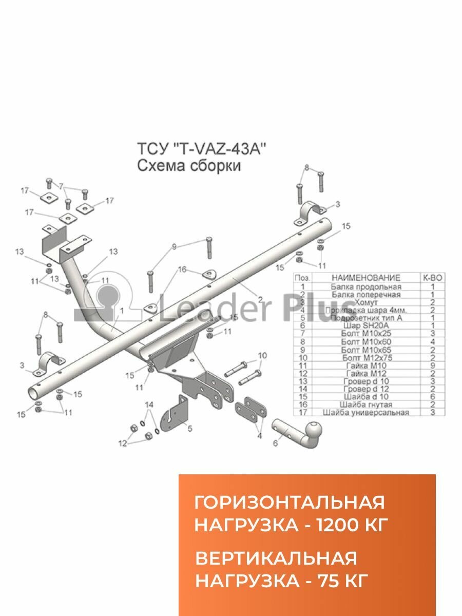 Фаркоп для Lada Niva, в т. ч. Urban (1977-2014, 2014-2020), Niva Legend, в т. ч. Urban (2020-) TAVIALS T-VAZ-43A информация: