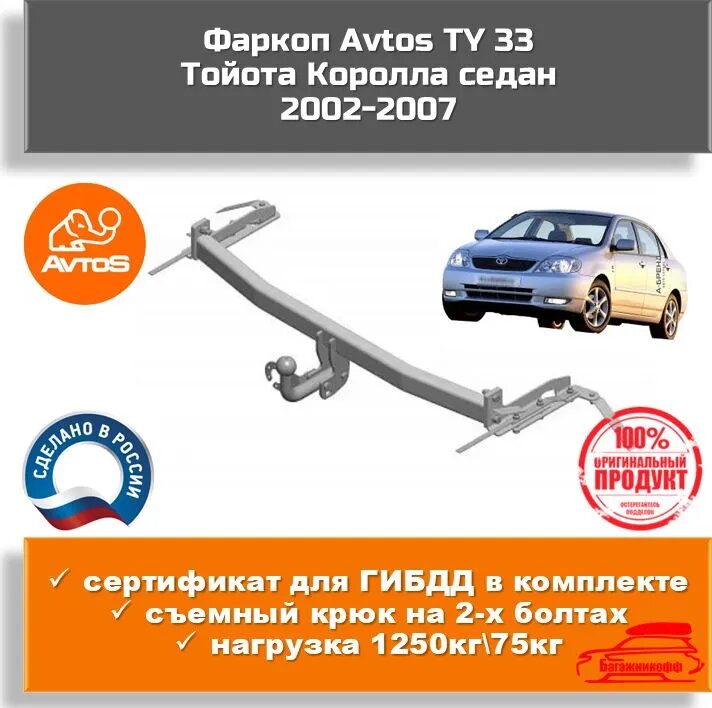 Отзывы на Фаркоп AvtoS TY 33 для Тойота Королла 2002-2007 седан (паспорт+сертификат в комплекте)