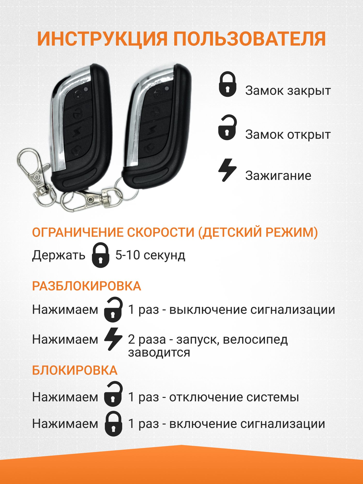 Сигнализация для электротранспорта велосипед/самокат/скутер с ограничителем скорости " Детский Режим " информация: