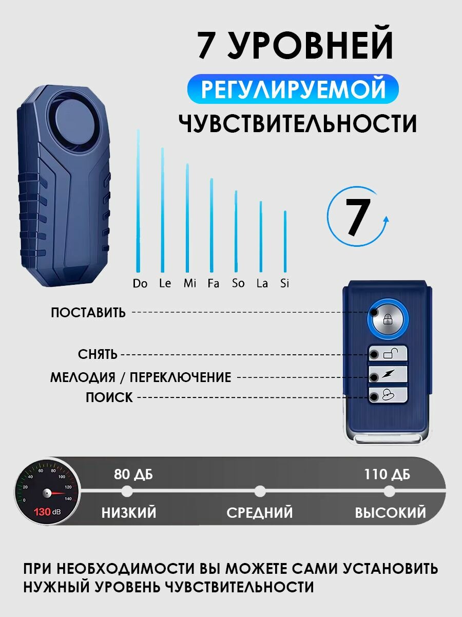 Отзывы на Сигнализация для велосипеда, электросамоката, мопеда 113 дБ от батареек с пультом управления IP55