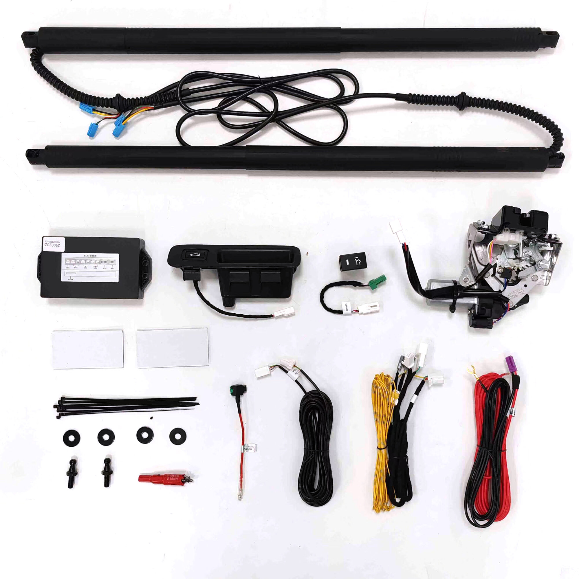 | Состав набора | "1. Электропривод крышки багажника - 2 шт. 2. Электронный блок управления - 1 шт. 3. Кнопка на дверь багажника - 1 шт. 4. Кнопка салона для управления открытием/закрытием багажника - 1 шт. 5. Замок двери багажника - 1 шт. 6. Комплект проводов для подключения привода. 7. Датчик ноги. 8. Инструкция по установке. U493 |