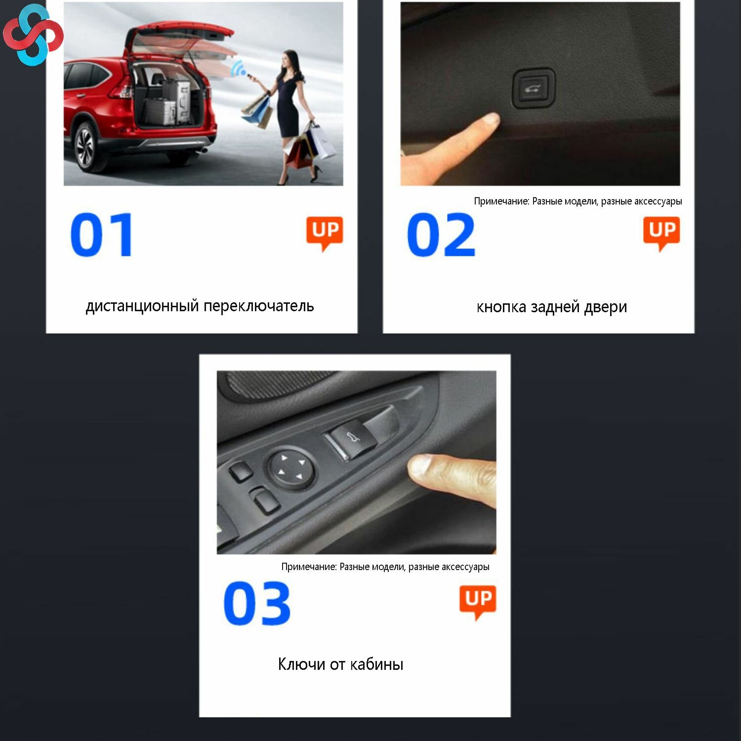 | Состав набора | Электропривод крышки багажного отделения 2. Электронный блок управления 3. кнопка управления закрытием крышки багажника 4. внутренняя кнопка для управления открытием/закрытием крышки багажника. 5. комплект проводов для подключения электропривода. 6. устройство оттягивания 7. инструкция по установке (русская версия) 8. Онлайн-инструкция по установке E768 X862 Q776 |