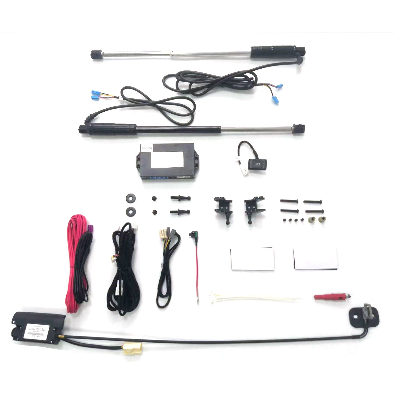 | Состав набора | "1. Электропривод крышки багажника - 2 шт. 2. Электронный блок управления - 1 шт. 3. Кнопка на дверь багажника - 1 шт. 4. Кнопка салона для управления открытием/закрытием багажника - 1 шт. 5. Замок двери багажника - 1 шт. 6. Комплект проводов для подключения привода. 7. Датчик ноги. 8. Инструкция по установке. I398 |