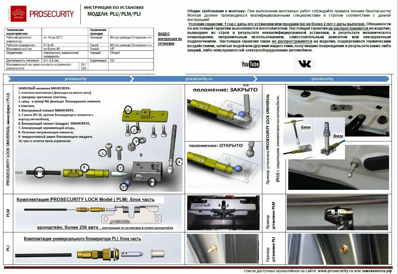 Механический замок капота для Nissan Almera (2012-2018), Pathfinder (3 поколение, 2005-2014), Qashqai (1 поколение, 2007-2014) PROSECURITY