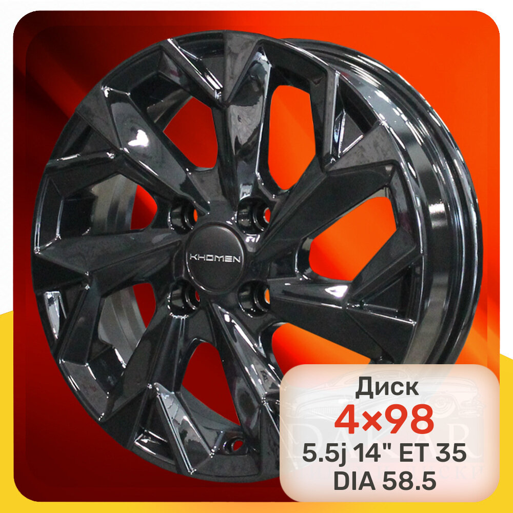 Отзывы на Колесные диски Khomen Wheels Диск 5.5j-14″ 4x98 ET35 DIA58.5 Black KHW-1402 Арт KHW104102