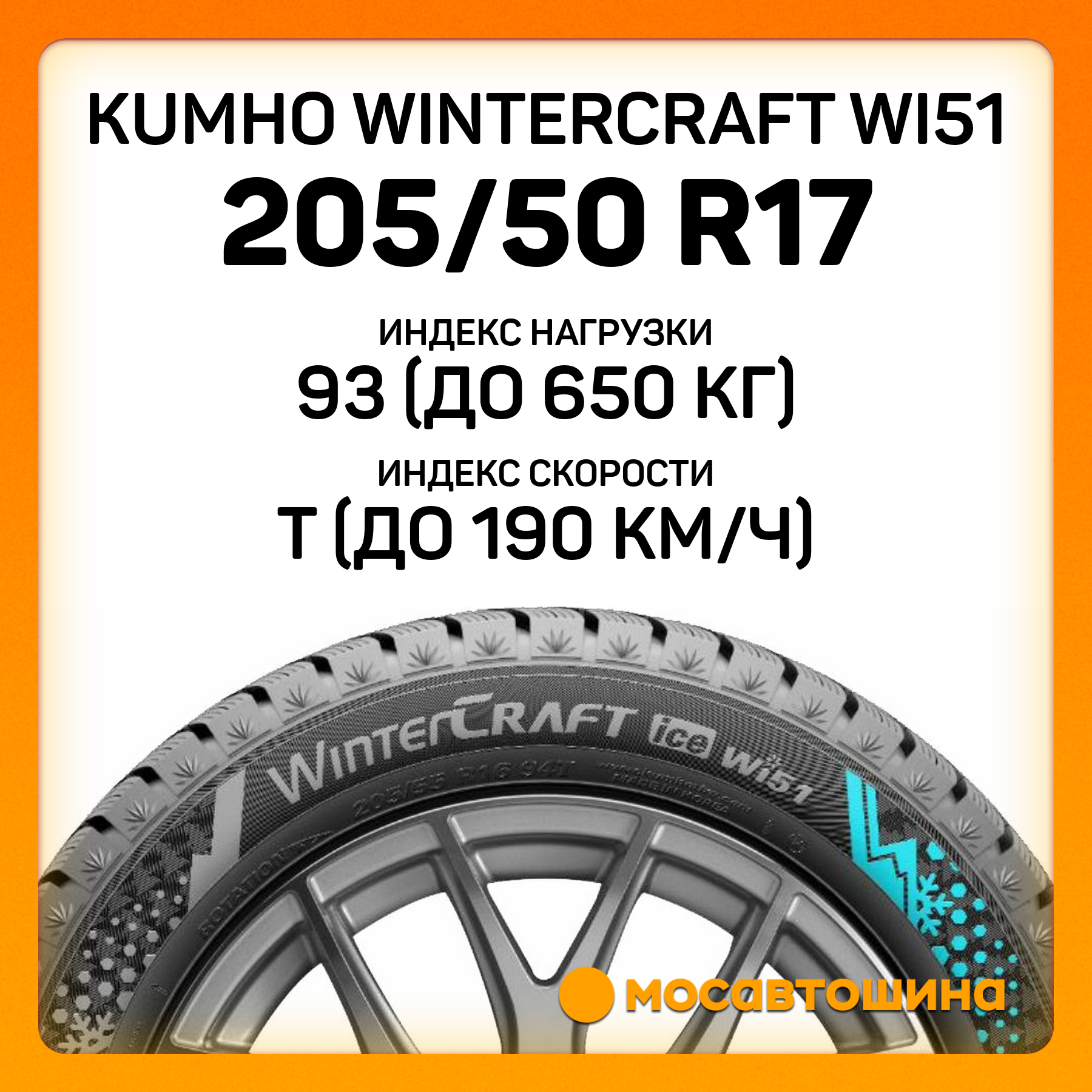 Зимние автомобильные шины Kumho Wintercraft WI51 205/50 R17 93T XL информация: