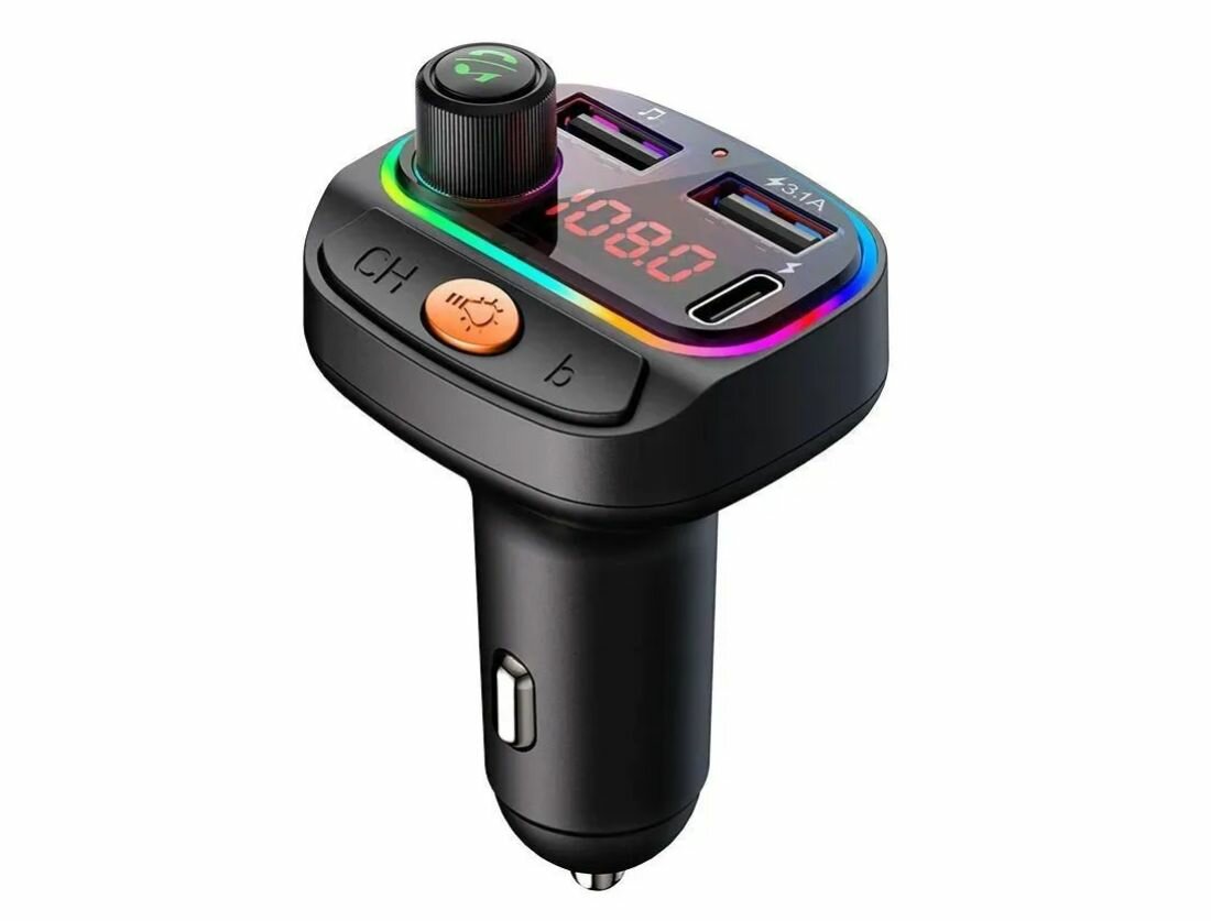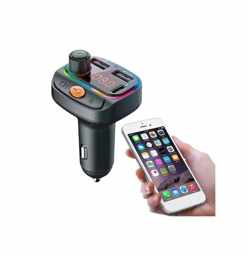 FM трансмиттер Bluetooth с RGB подсветкой / Модулятор автомобильный / Адаптер быстрой зарядки с 3 USB 3.1 A TDS-13