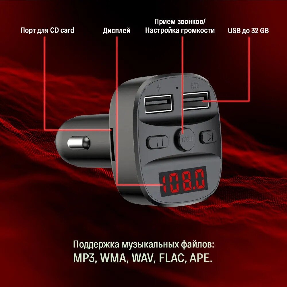 ФМ-модулятор T60 Bluetooth, 2 USB, FM-радио, MP3-плеер информация: