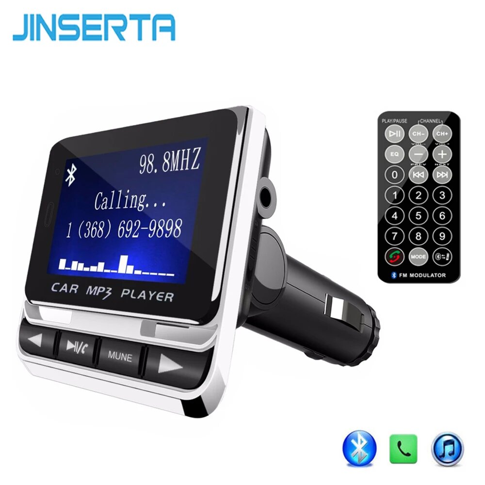 Отзывы на Автомобильный FM-трансмиттер JINSERTA, Bluetooth, MP3-плеер с ЖК-дисплеем, зарядное устройство USB, поддержка TF Line-in AUX