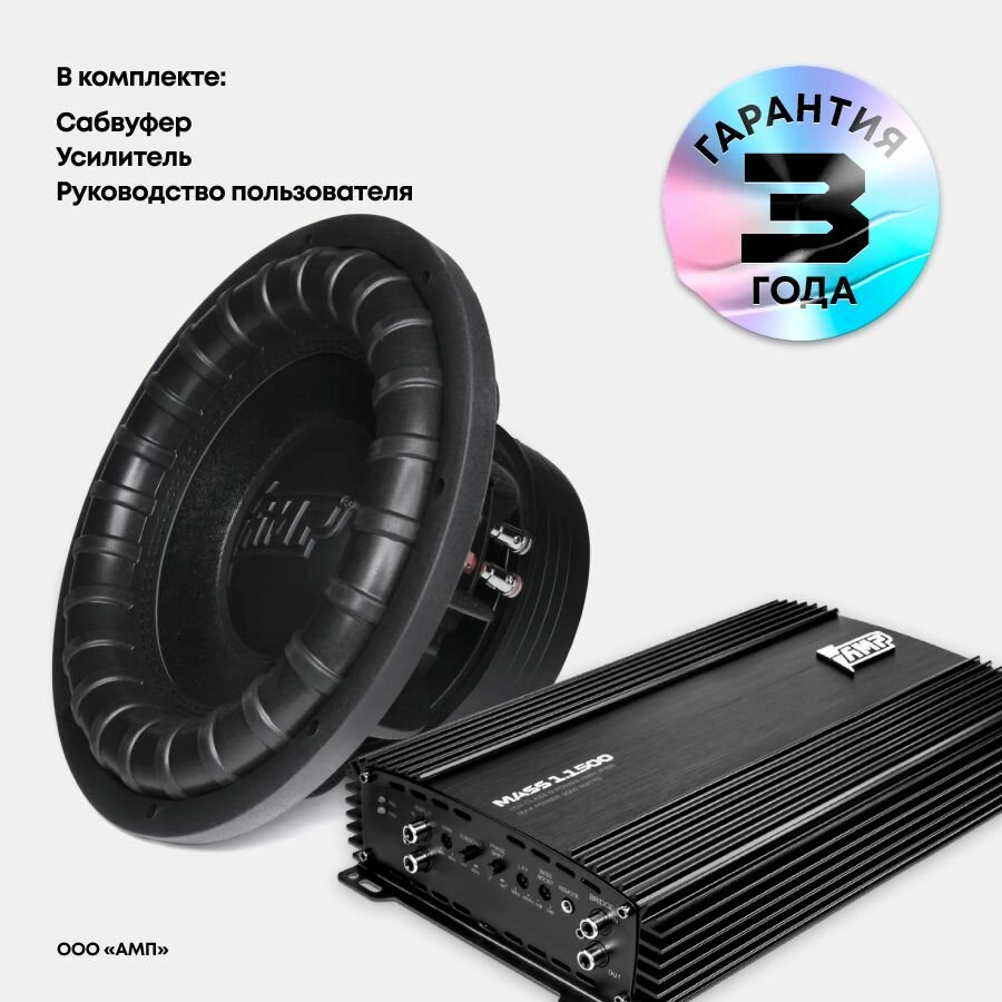 10 цен на Комплект Сабвуферное звено MASS 1000 12D2 + усилитель MASS 1.1500