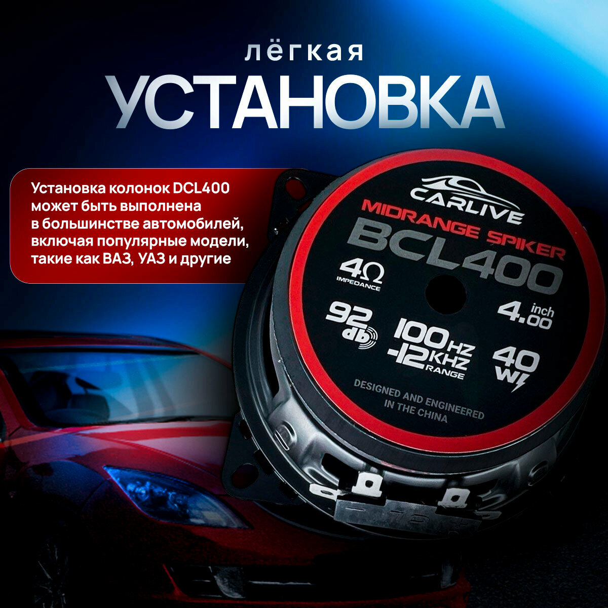 Колонки CARLIVE bcl400, для авто, широкополосные, 10см, 4Ом, 50-100Вт, 2шт информация: