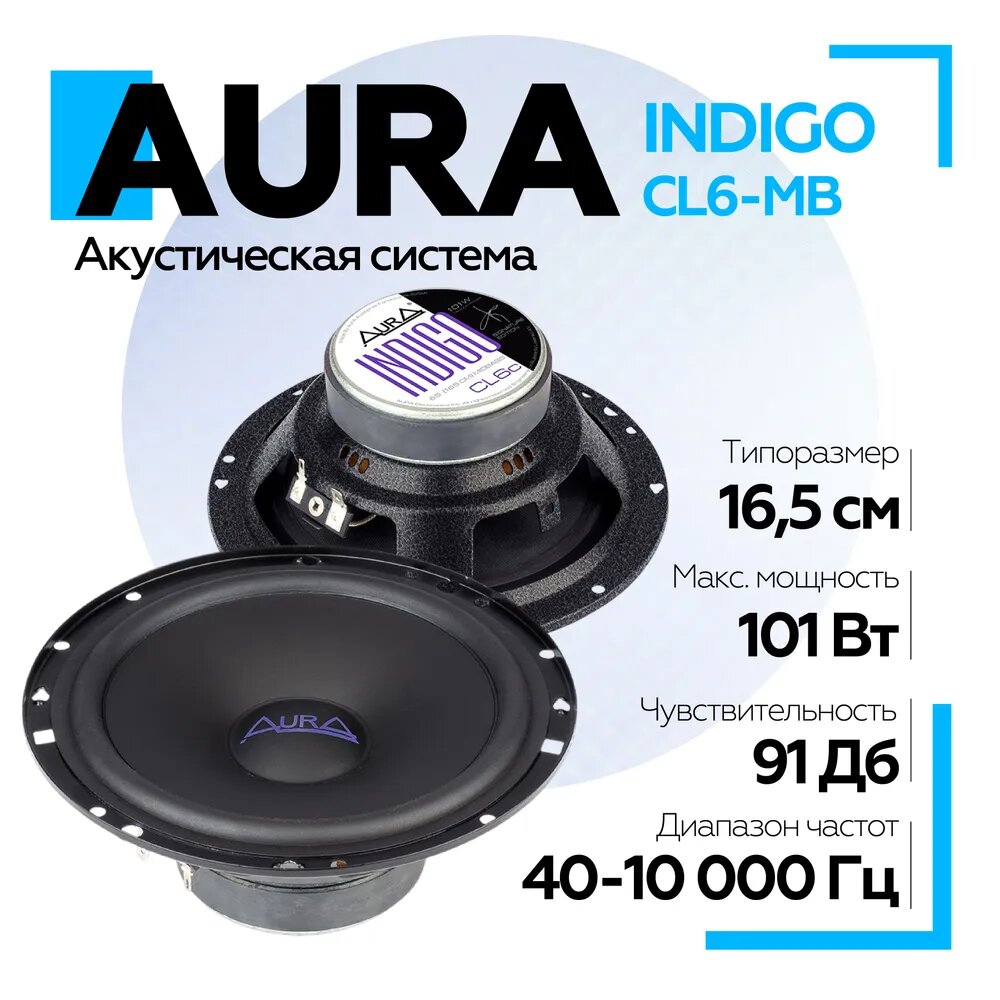 10 цен на Акустическая система Aura INDIGO-CL6-MB 6,5" (16,5 см) / Мидбас / Колонки автомобильные