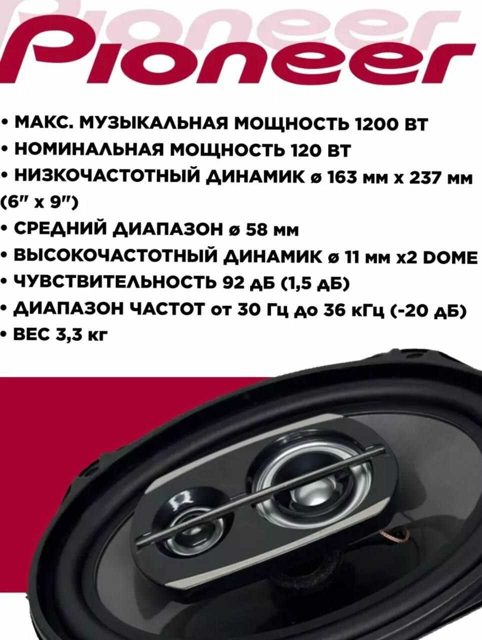 Автомобильные динамики "Pioneer TS-A6999A" / Комплект из 2 штук / Коаксиальная акустика 3-х полосная, Овал 15х23 См (6х9 Дюйм.), 1200 Вт. информация: