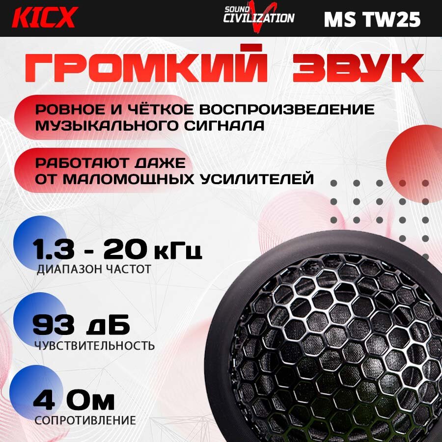 10 цен на Акустика твитеры KICX Sound Civilization TW25, 2 шт, 25Вт, 4Ом