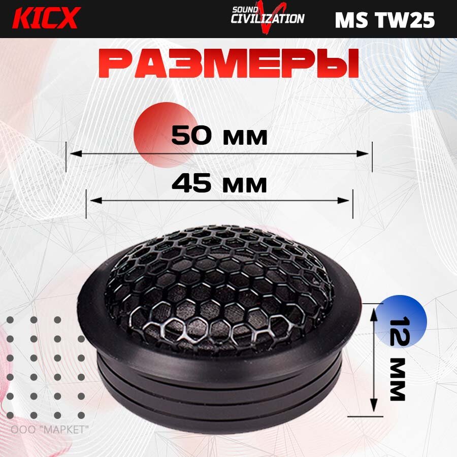 Акустика твитеры KICX Sound Civilization TW25, 2 шт, 25Вт, 4Ом информация: