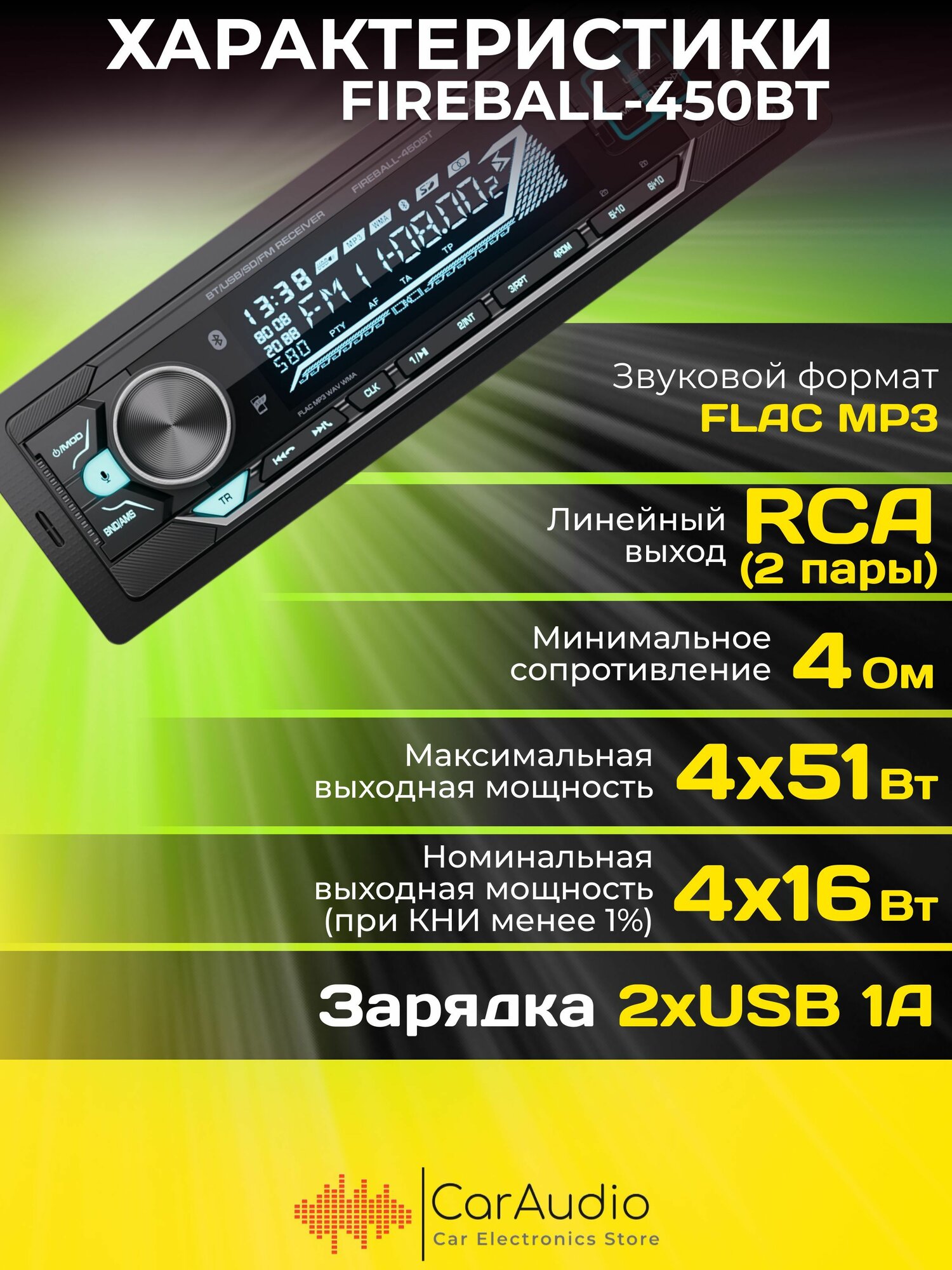 Магнитола Aura FIREBALL-450BT USB-ресивер Магнитола с bluetooth информация: