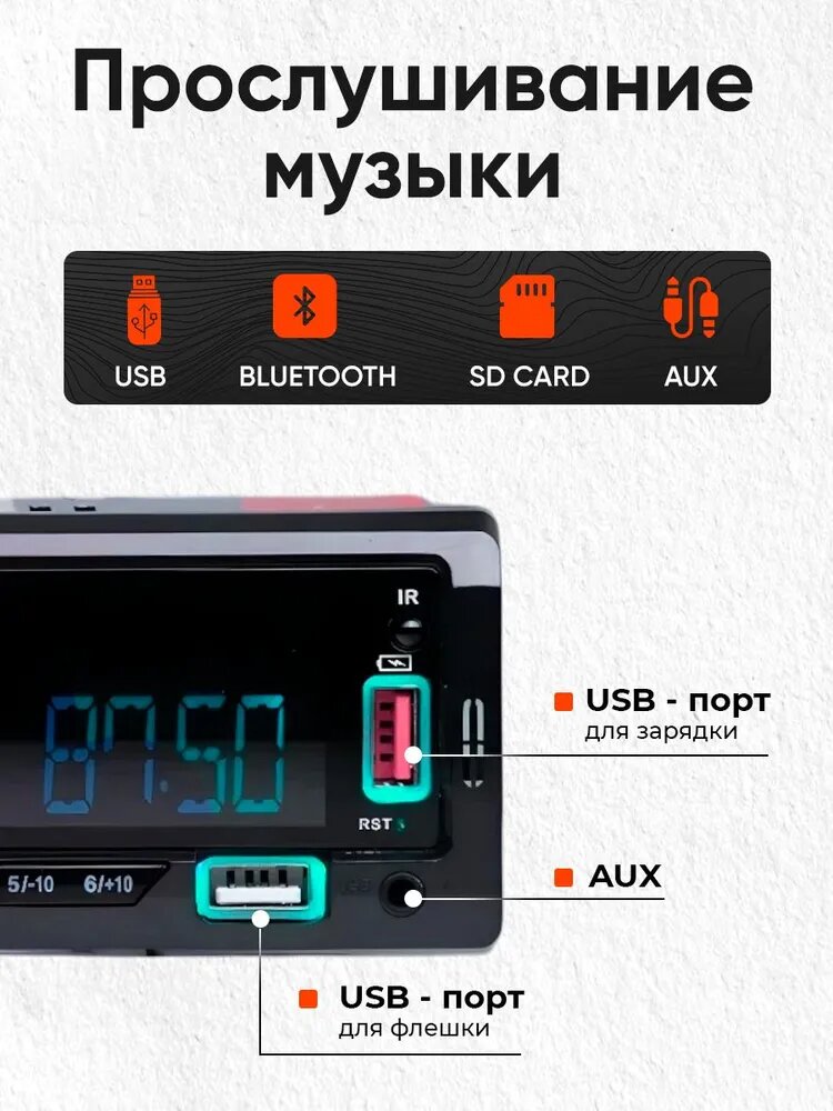 Автомагнитола /Магнитола 1 din с Bluetooth / 12V / 7 цветов подсветки экрана AUX / USB / Блютуз 2 057 ₽