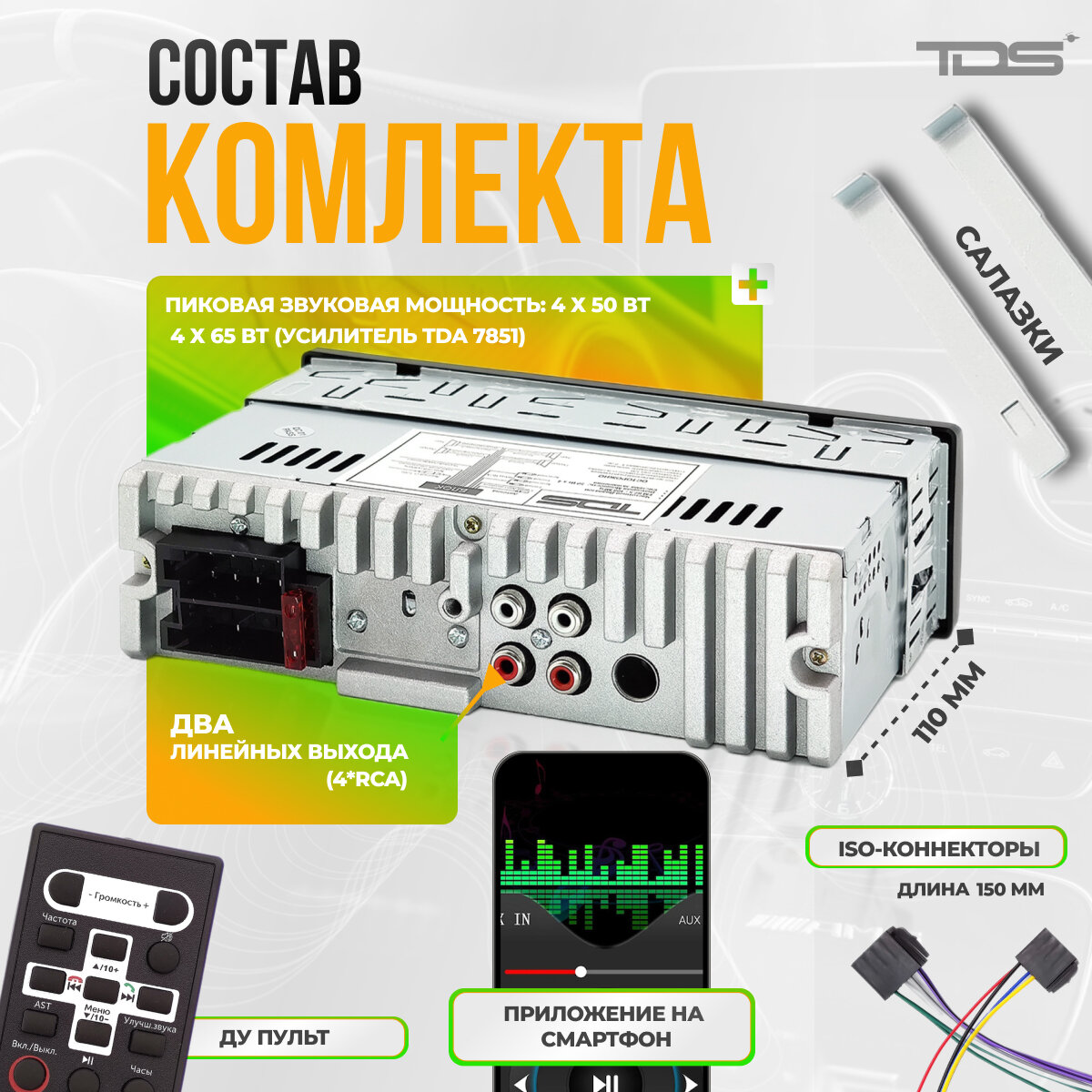Автомагнитола 1 DIN с пультом с Bluetooth, AUX, USB универсальная TDS TS-CAM21 информация: