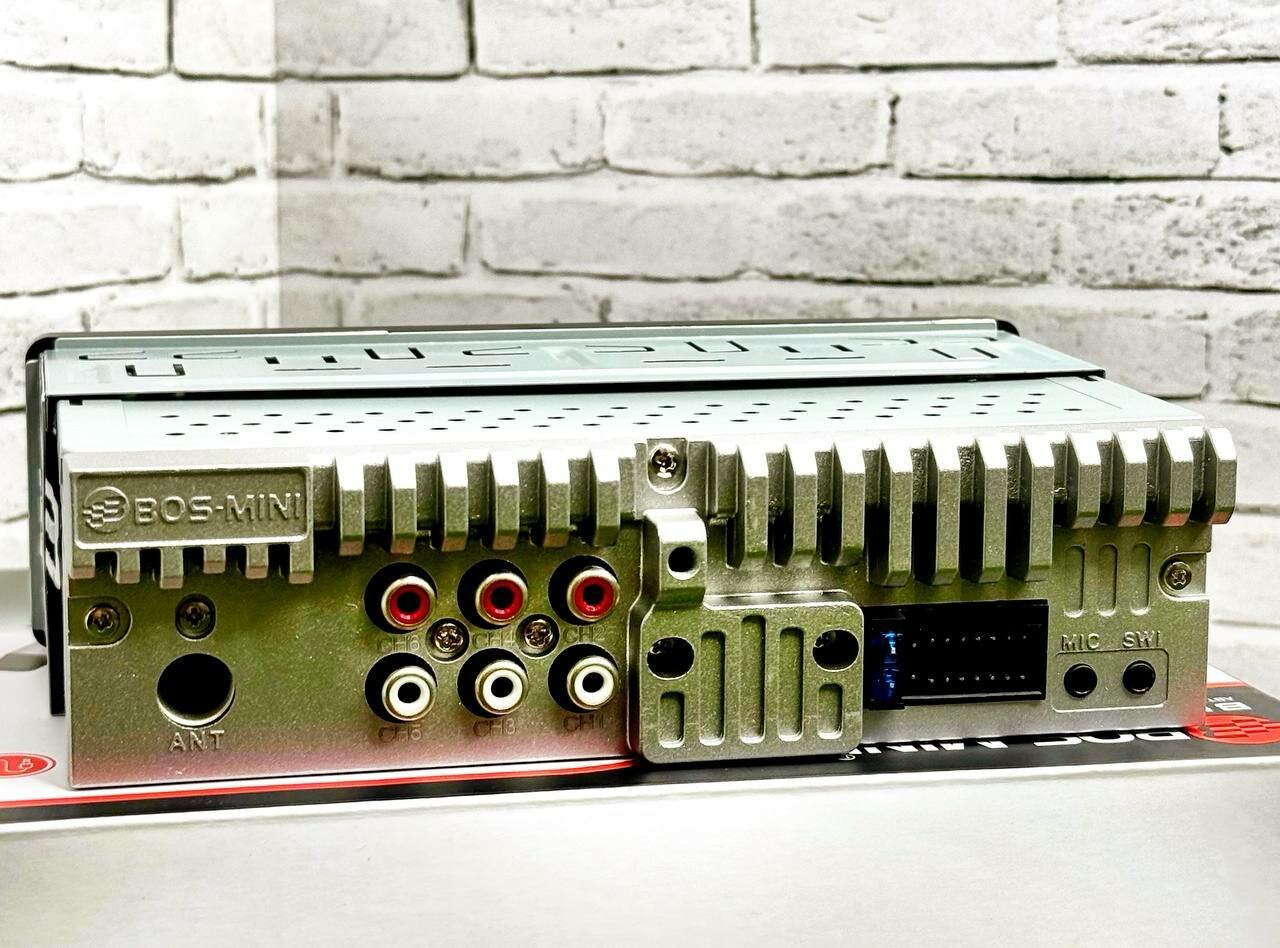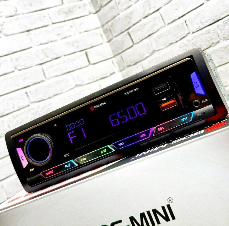 Магнитола автомобильная, автомагнитола 1 din, BOS-Mini , DSP процессорная/1DIN, Bluetooth, Aux, USB, RGB ,6 выходов RCA