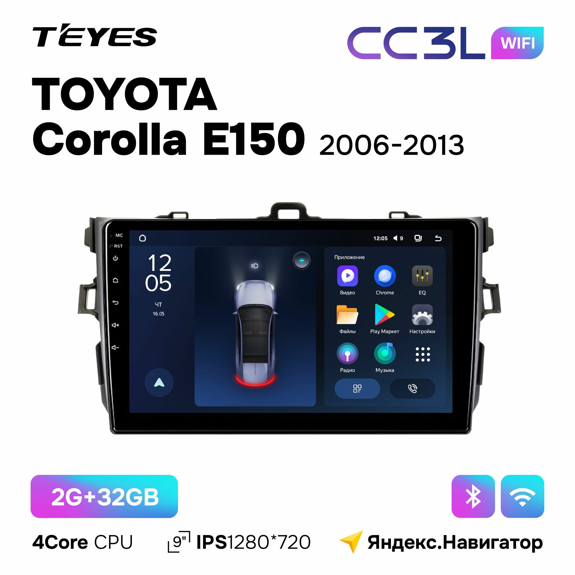 Магнитола Android Teyes CC3L Wi-Fi 2/32 для Toyota Corolla E150 2006 - 2013 информация: