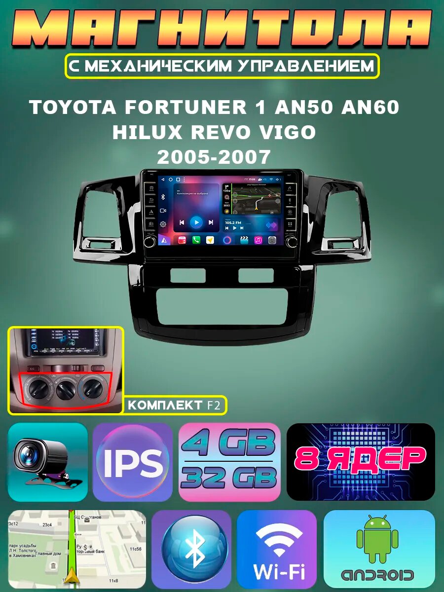 Магнитола для Toyota Fortuner 1 AN50 2005-2007 4/32ГБ Bluetooth, FM/AM, GPS информация: