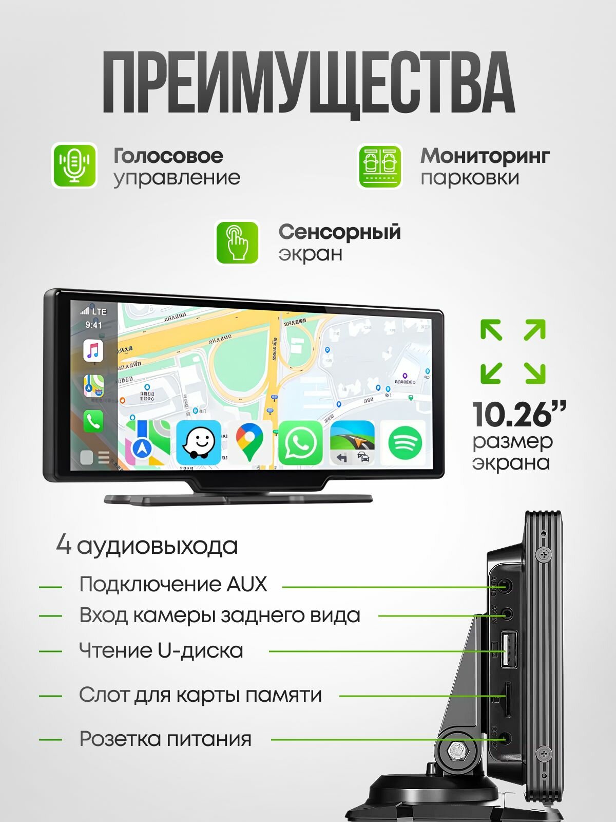 10,26 Портативный CarPlay Android Auto Автомобильный радиоприемник Мультимедийный видеоплеер с сенсорным экраном