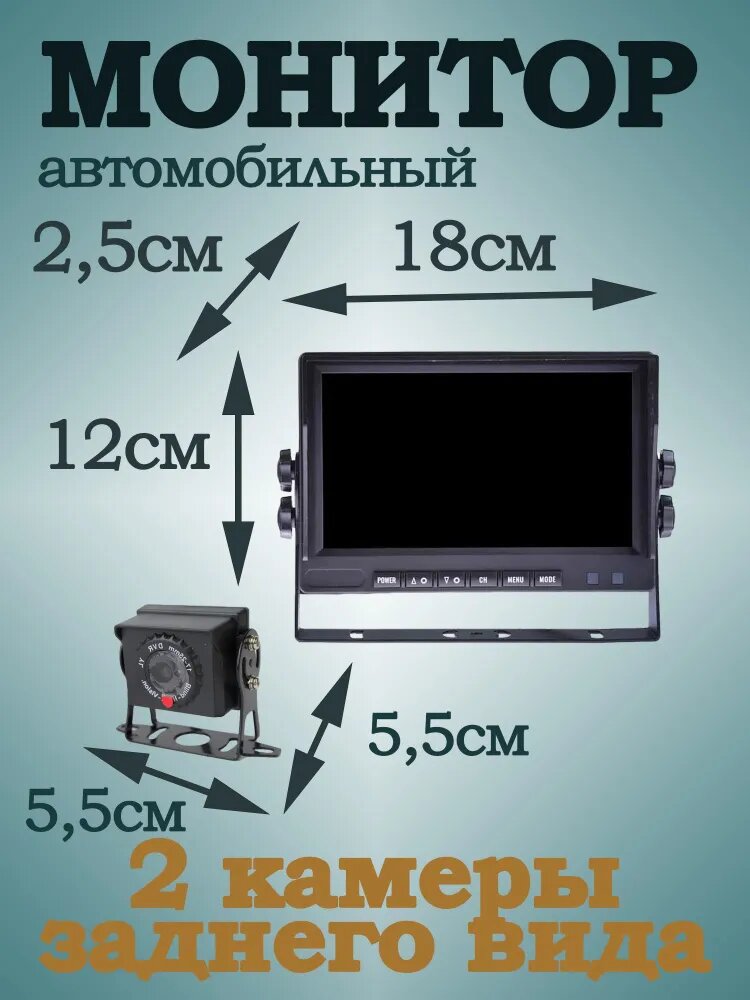 Автомобильный монитор 7 дюймов с двумя камерами 12-24в черный полный комплект информация: