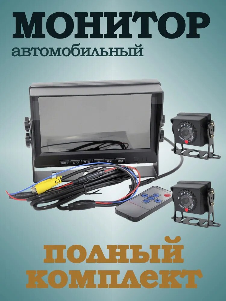 Автомобильный монитор 7 дюймов с двумя камерами 12-24в черный полный комплект