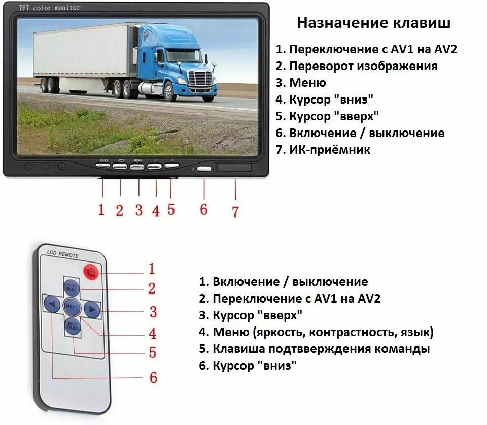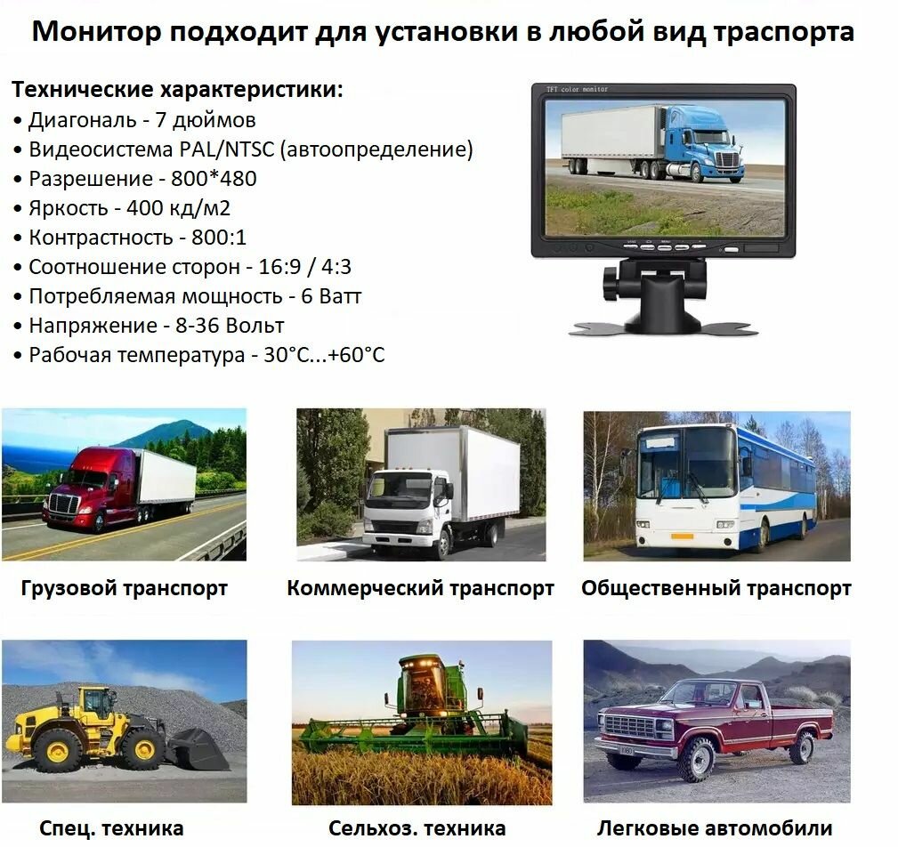 Монитор автомобильный NSCAR 7.0 (4PIN + RCA) информация:
