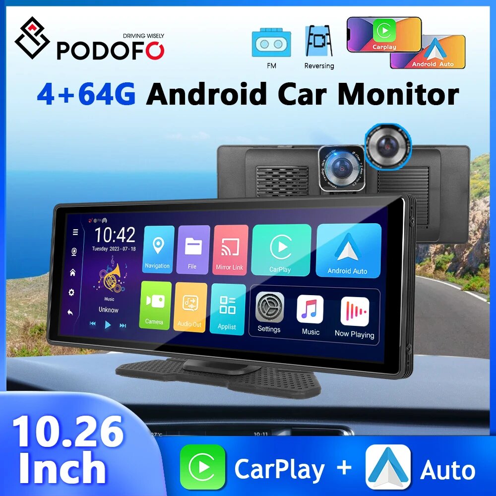 Podofo 10,26 'CarPlay монитор 8 ядер 4 + 64G приборная панель Carplay Android, with 128G Card информация: