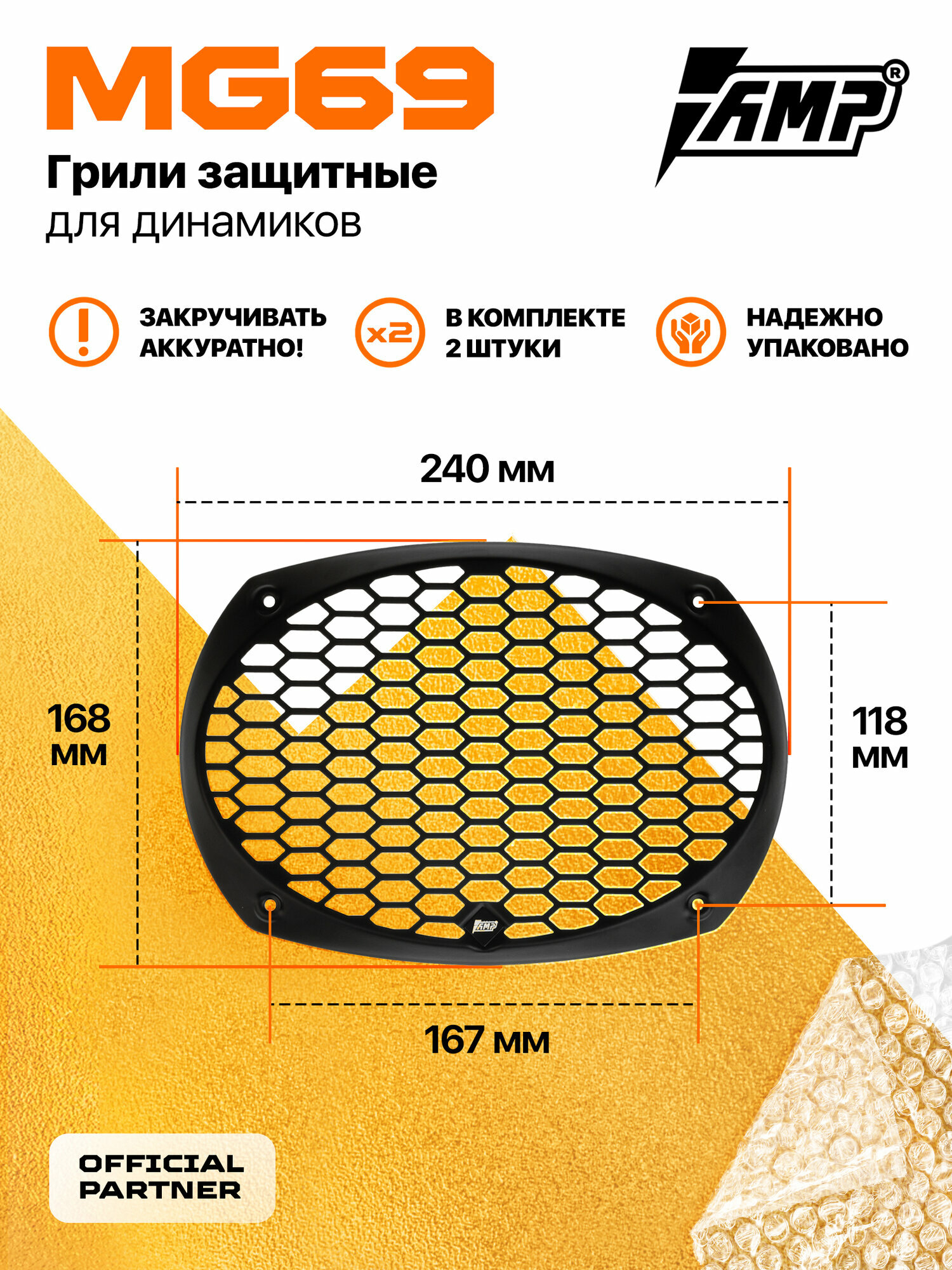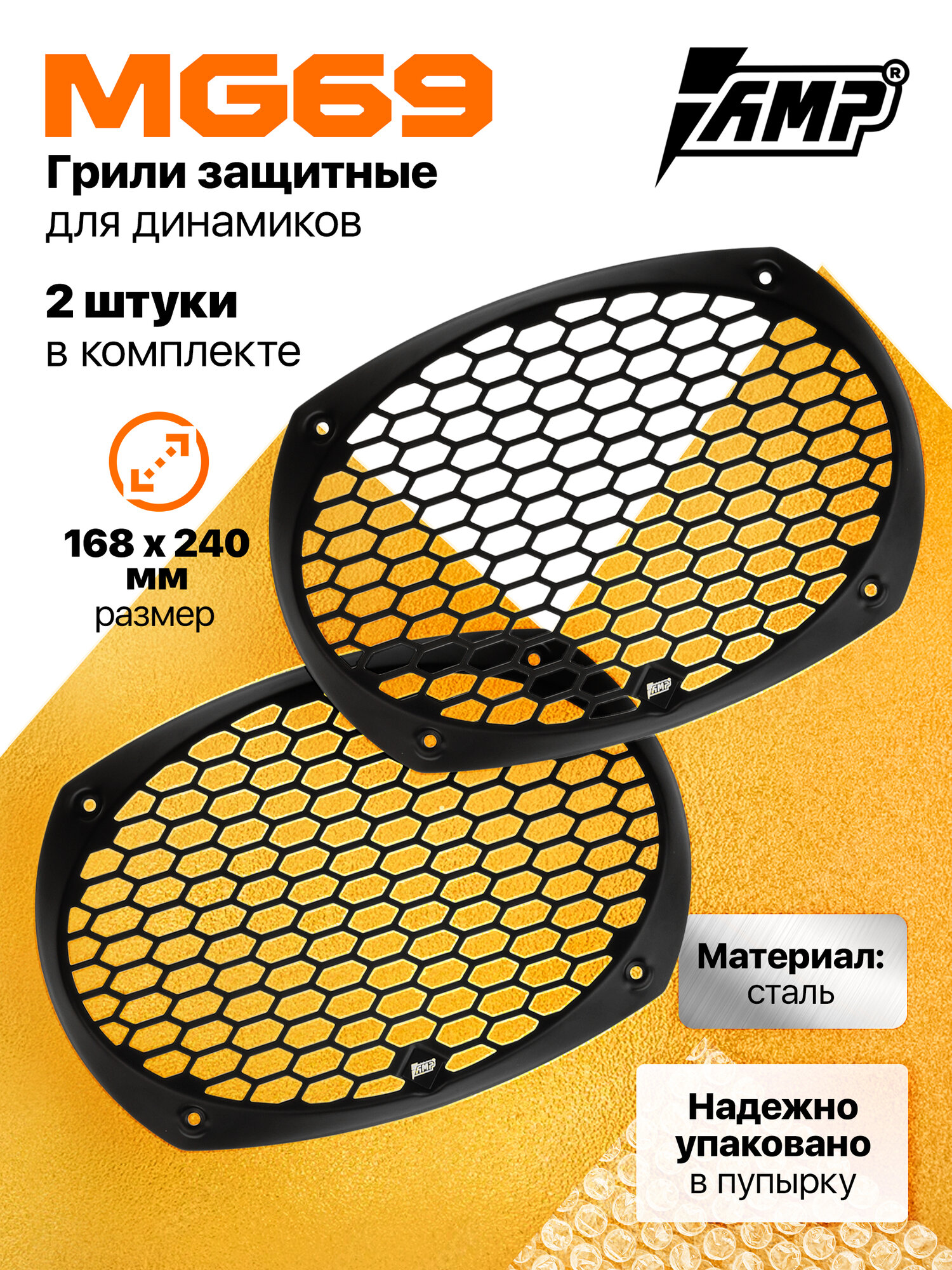 Грили для динамиков AMP MG69 (2 штуки) стальные 16x24 см; сетки для акустики типа "Овал" 6х9 информация: